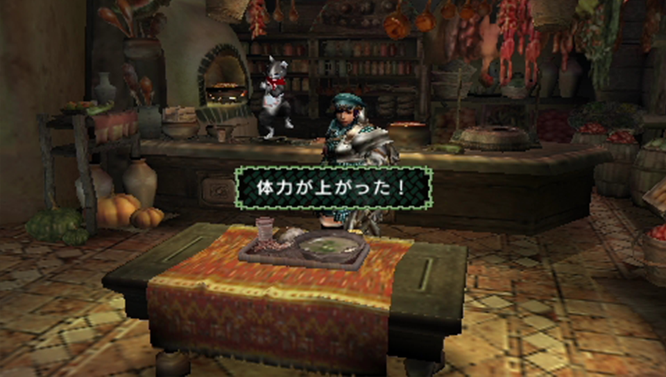 キッチンアイルーに経験を積んでもらう為にも食事をし、色々と準備を整える。調合書をしまい忘れて所持したままだが、10分で戻ってこられるハズなので討伐してからボックスに戻そうと思う。いざ、クックの討伐へ。