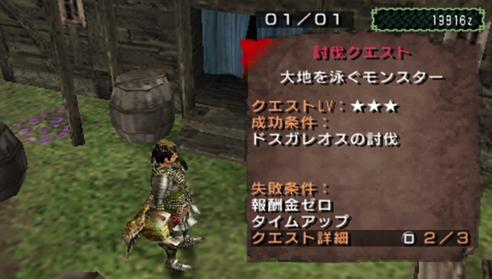 そんなこんなで村へと帰還。ドスガレオスの討伐訓練が追加された。クックの討伐訓練もまだ1回もやっていないのだが、しばらくクックの討伐・捕獲依頼が続く様なので、ひと段落したらコチラも日誌にまとめようと思う。