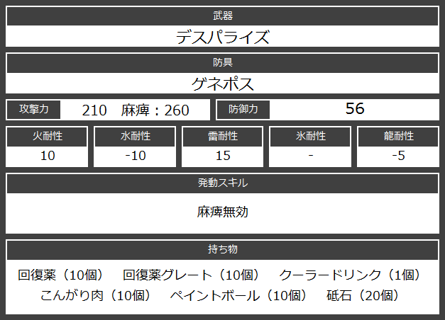 剣士用装備なので、耐性では分が悪い。